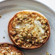 Yes, it seems weird, but toasted English muffins loaded with a pistachio-walnut-butter-brown-sugar mixture and broiled to caramelized perfection is straight from the heavens. Add a little mascarpone cheese, a little drizzle of honey, and this is my breakfast (snack? dessert?) lifestyle right now.