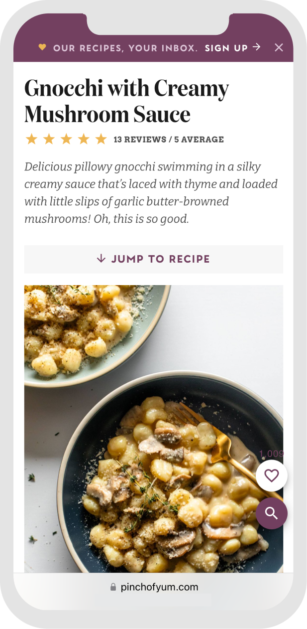 Best for long-term performance, especially in top search results. Blog posts are at the core of how we illustrate the story of a brand, and they include beautiful imagery, personal notes on the recipe, and a full-text recipe.